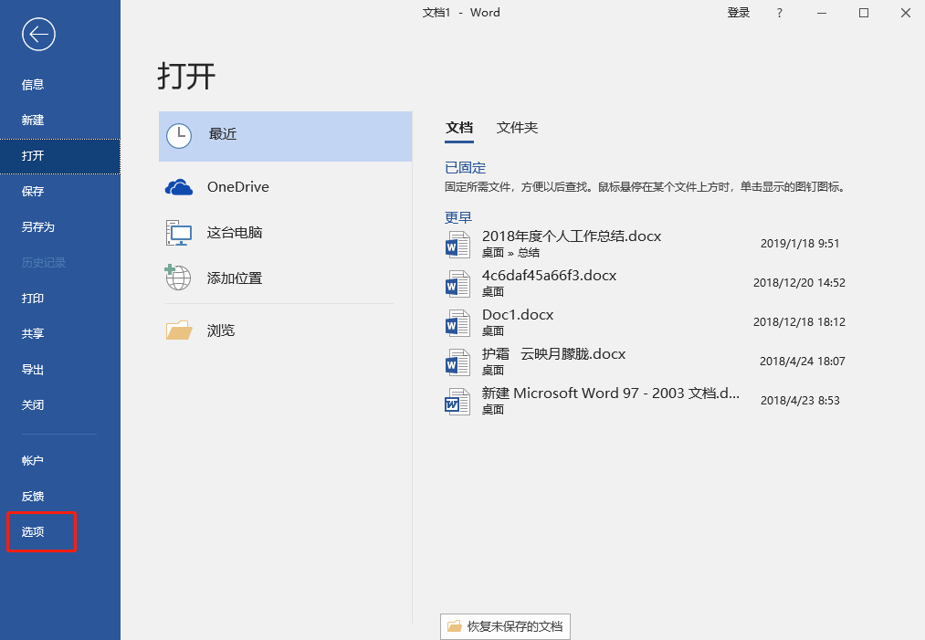 第一步,打开【Word选项】,Word选项在哪里打开呢?直接点击【文件】,选择【选项】就是Word选项了。