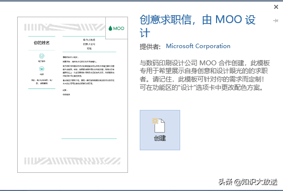 2. 只需要选中你要进行编辑的 Word 模板使用即可,我们以”创意求职信”这个模板举例说明,点击”创意求职信”,你会看到如下图的界面,点击”创建”即可。