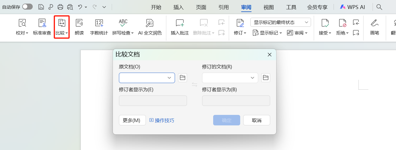 打开文档工具,在顶部菜单栏选中【审阅】,找到【比较】选项并点击,启动文档比对流程。