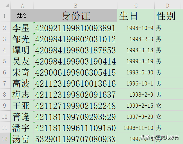 18位数的身份证号里面涵盖了很多的信息,提取这些信息一般要使用到函数。下面介绍一个更简单的方法,不需要自己写函数,一键提取身份证号码中的出生日期,性别等信息。