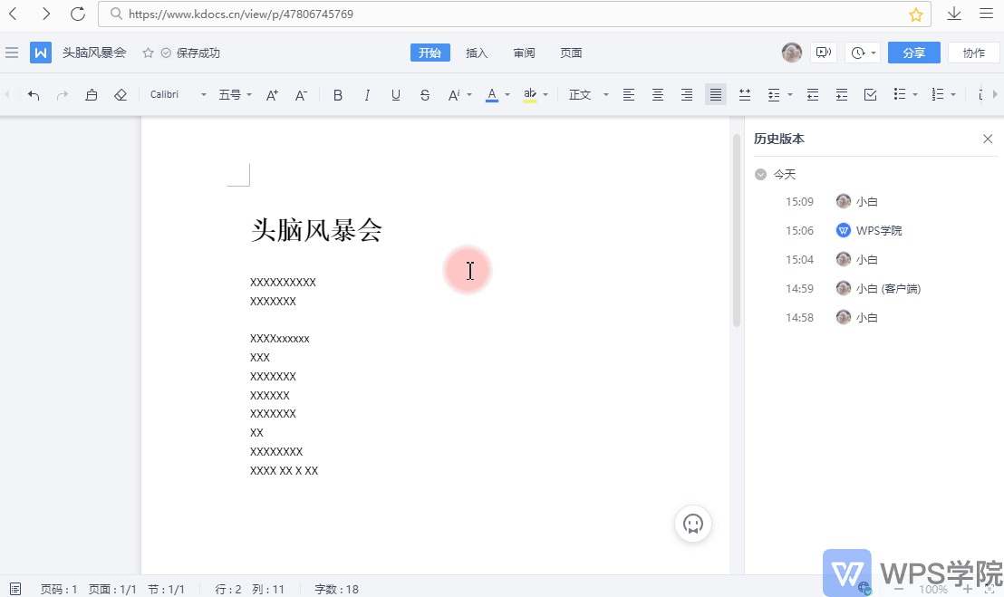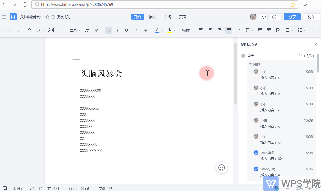 5. 在“协作记录”可查看每个人对文档的编辑。