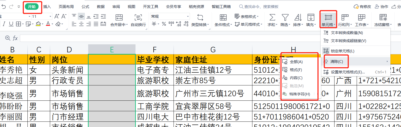 开始—格式—清除—全部(格式、内容、批注、特殊字符)