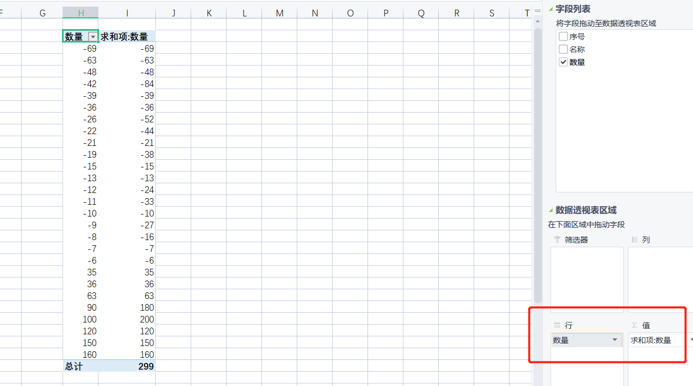 数字组合:首先我们插入透视表,将数量和值两个里边都用到。