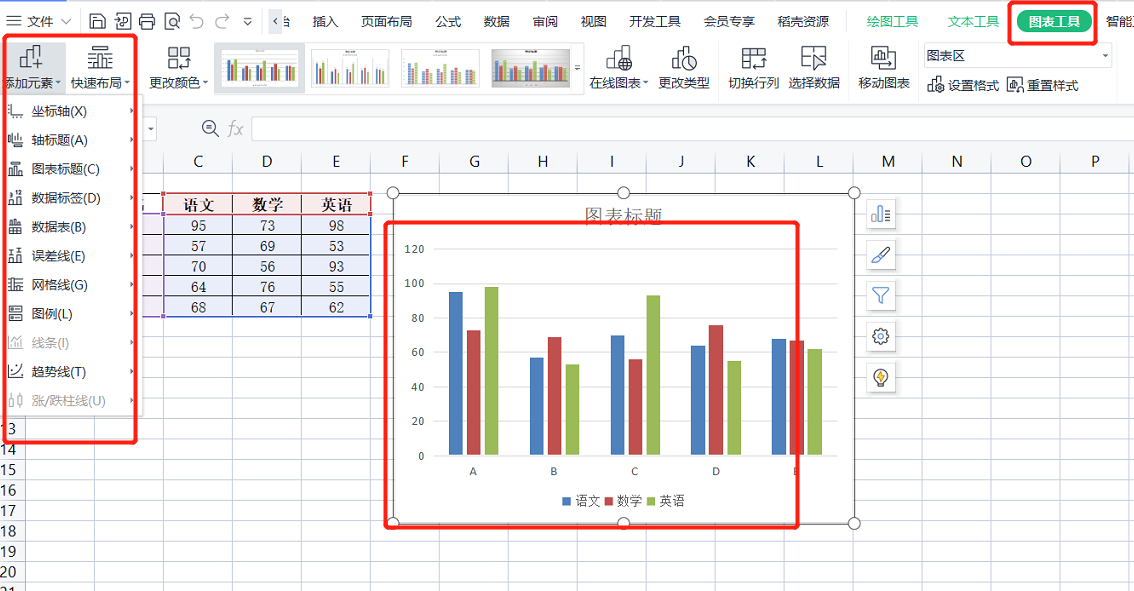 1、WPS中添加图表元素