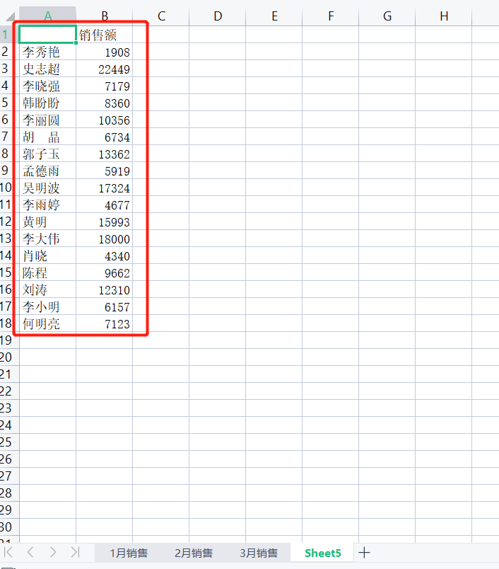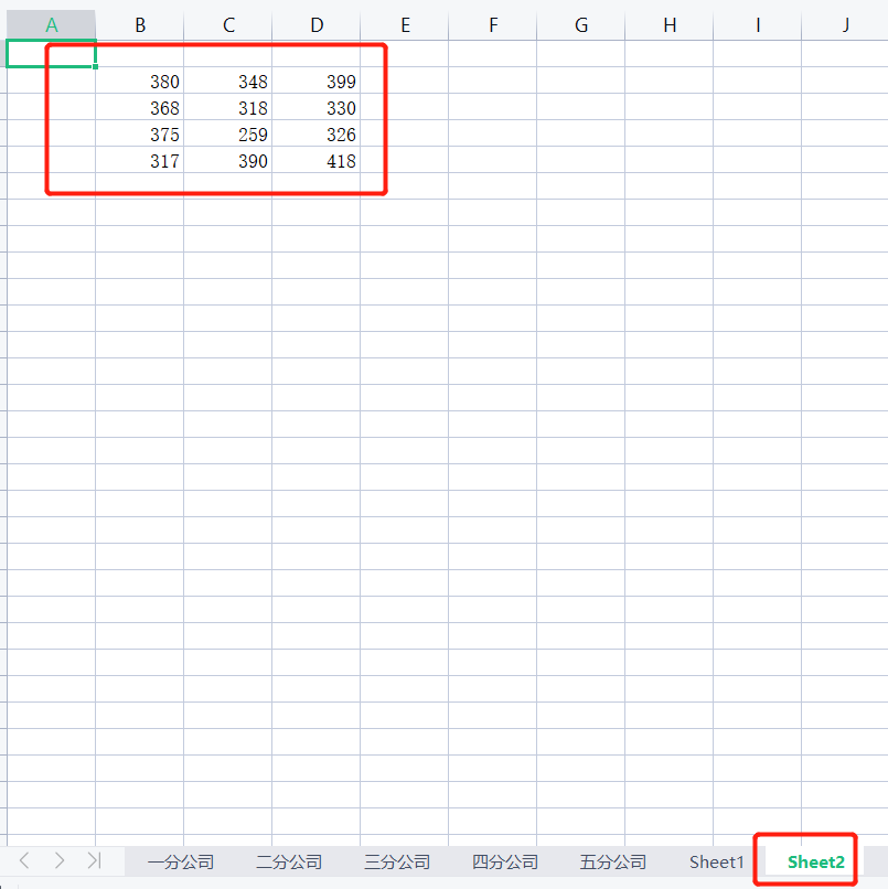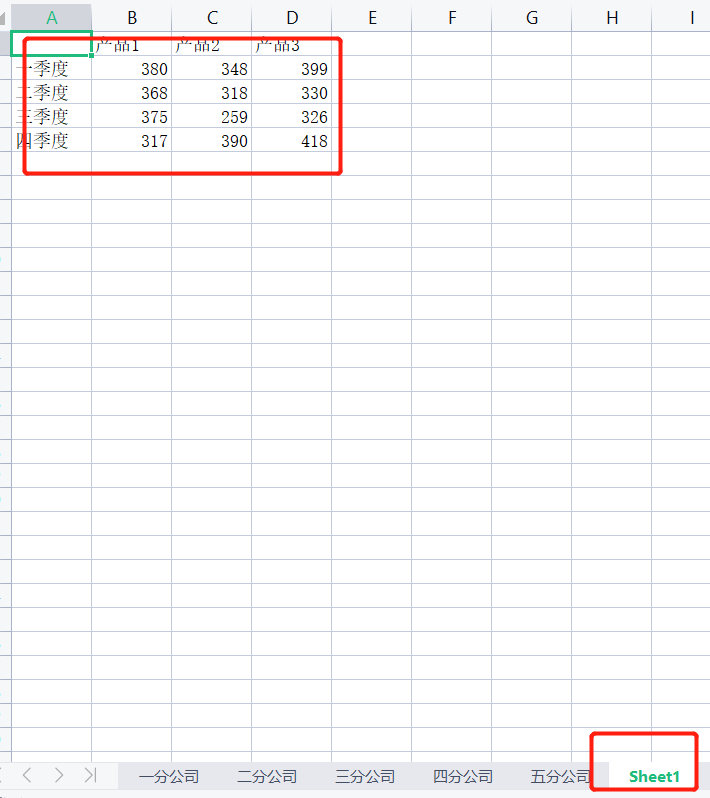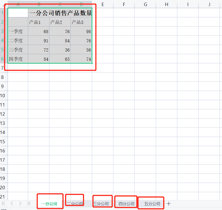 我们准备几张表,数据区域都是一样的,不同的地方就是在每个工作表。