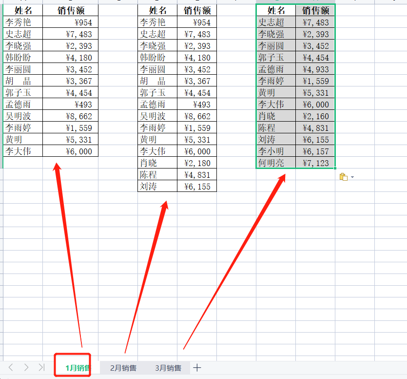 下面我们以相似的数据实例进行操作。如下图,三个月的销售,比较相似。