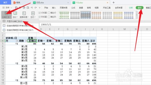 21.点击设计,点击分类汇总,选择不显示分类汇总;
