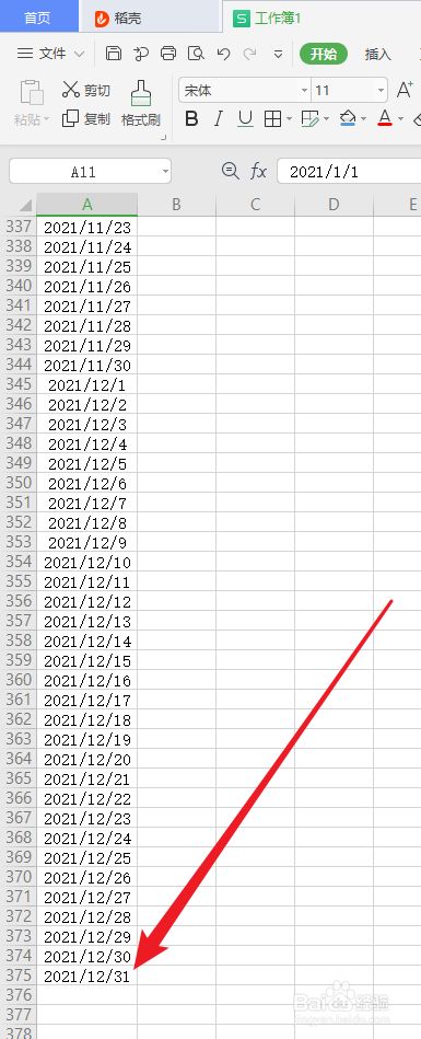 4.设置完成后点击确定,全年日期就顺利地填充到表格里了。