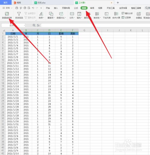 19.修改数据透视表的名字为:2021年日历;