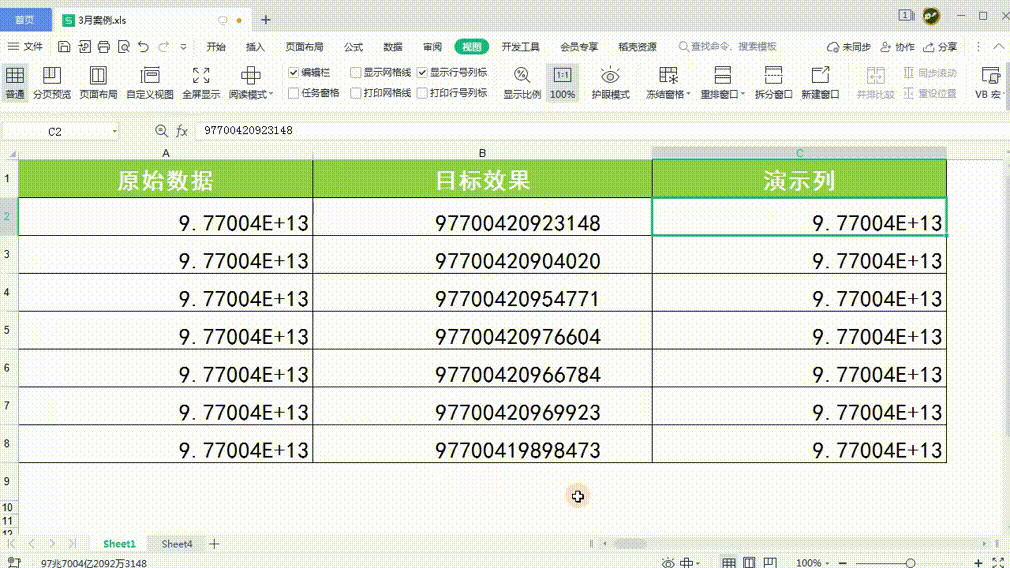 这样原先不能正常显示的数字就快速恢复原貌了。