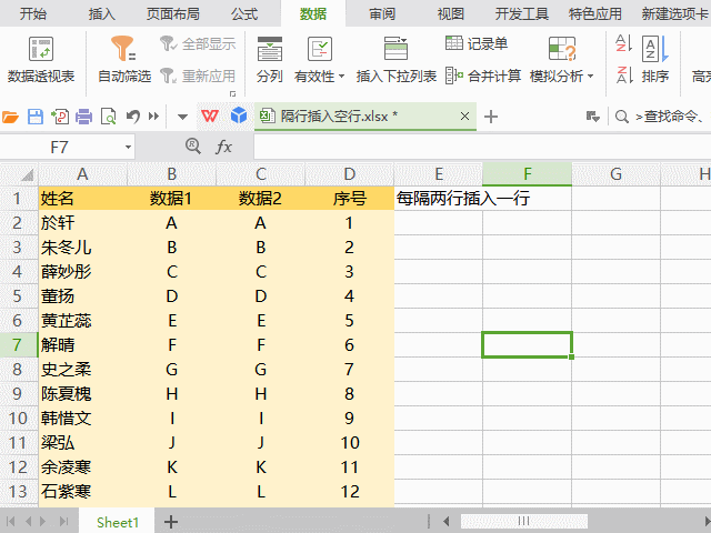 有些朋友在用WPS制作工作条、数据汇总、翻译数据时,需要在表格中间隔一定行数插入几个空行。怎样实现批量这些操作呢?