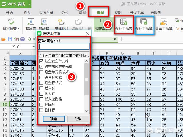 这种方式Excel中也适用。在“审阅”菜单下有“保护工作簿”和“保护工作表”的选项,点击这些按钮即可对工作簿或工作表设置密码。工作簿只的是整个表格,包含多个工作表(sheet)。