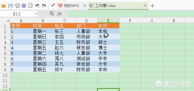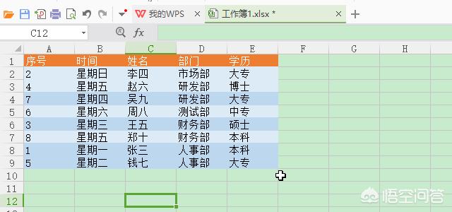 先介绍通常的自定义排序方法,已经了解的朋友可以略过这一步,直接去看方法二的个性化的操作步骤。以下表为例,将数据按照“市场部、研发部、测试部、财务部、人事部”的顺序排列。