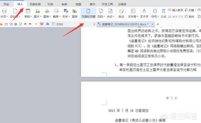 首先打开一篇文件,我们可以看到文件中的第一页第二页的页眉,如图所示: