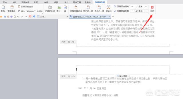这样子第二页的页眉就会被删除了,在点击关闭,这个操作就完成了。如图所示: