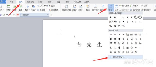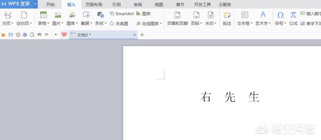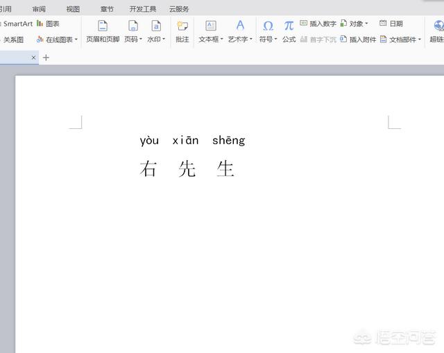 如下图所示,例如,我们现在需要在WPS文档中我们对“右先生”这三个字进行注音。