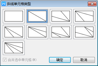 弹出“斜线单元格类型”对话框,从中可以选择斜线表头的类型,例如我们选择第一种常用的类型,单击“确定”按钮。