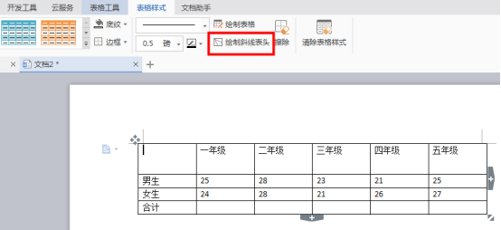 斜线表头是表格中常用的一种方式,这也是单元格的一种特殊格式。在WPS中也提供了设置斜线表头的功能。单击“表格样式”菜单中的“绘制斜线表头”按钮。