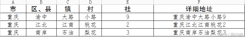 地址信息是分散的,因工作需要,你得用一个单元格来将其汇总成详细地址,我知道的有两种方法可以实现,推荐第一种方法。