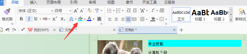 然后,把每个版块的标题加上底纹,如图所示,标识成蓝色的底纹,在开始里面的红色箭头处,选择你喜欢的颜色就可以了。