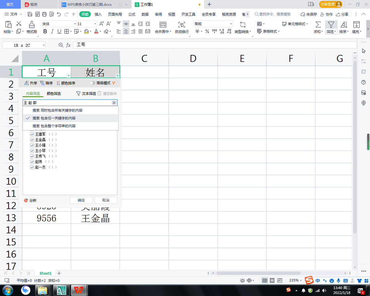 第二步在内容筛选中,选择姓,中间用空格隔开,这样就可以同时筛选了。