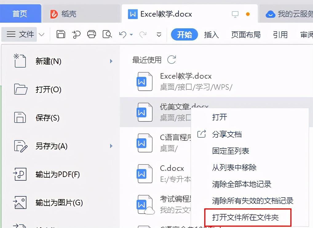 可以在“云文档”-“最近”查看最近使用或保存的文件,在文件下方可显示文件路径。