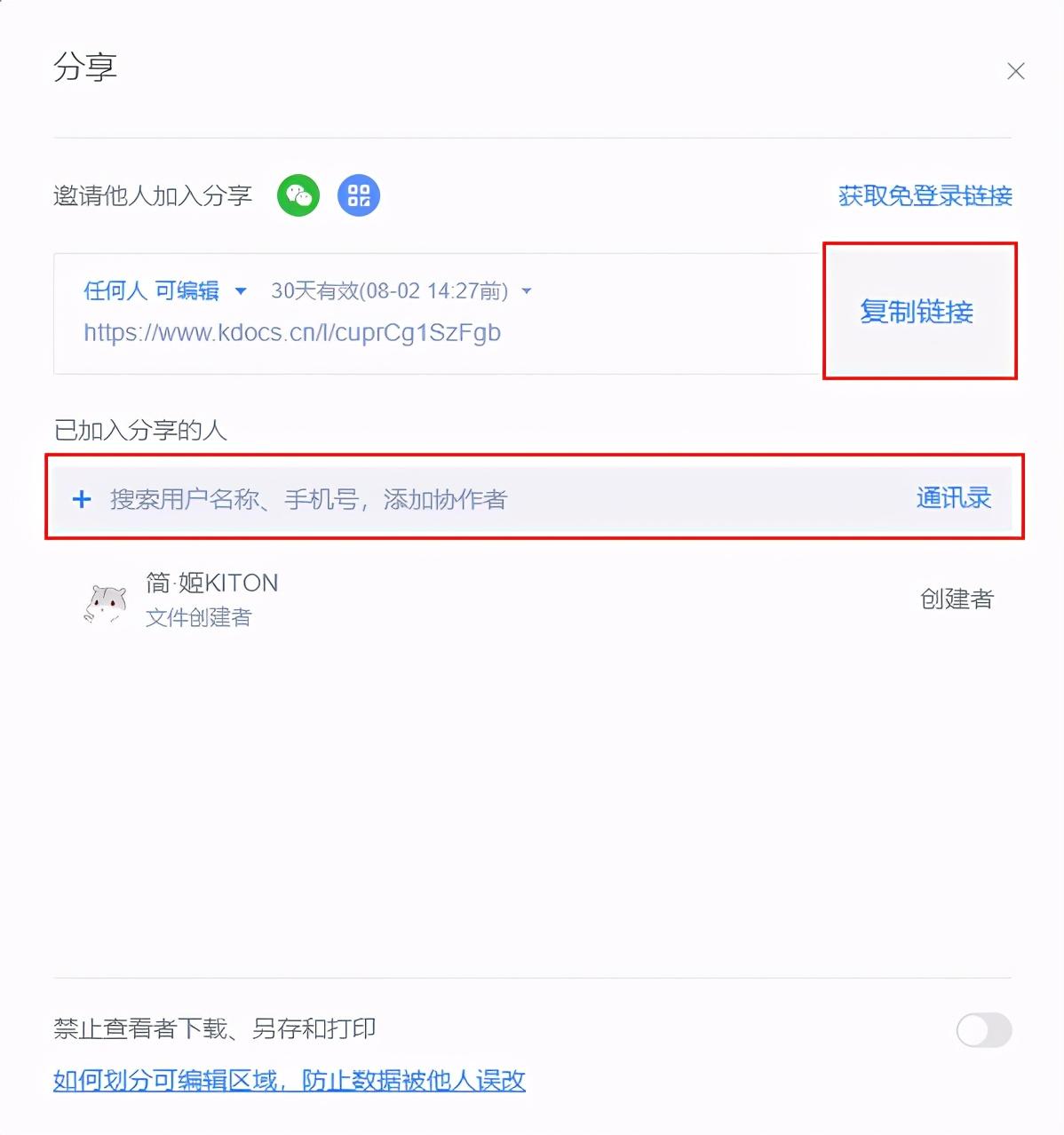 点击创建并分享,将分享链接发给成员,成员收到链接后点击进入,就可以协作编辑同一文档啦。