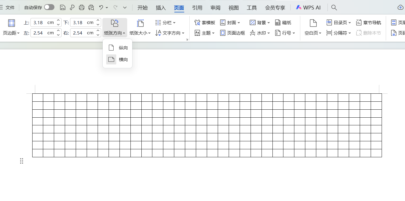 1.点击菜单栏“页面”,将纸张方向调整为横向;