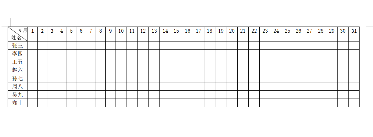 2.选择“插入”→“表格”→“插入表格”,弹出对话框后,列数设为32,行数按实际工作人数调整。