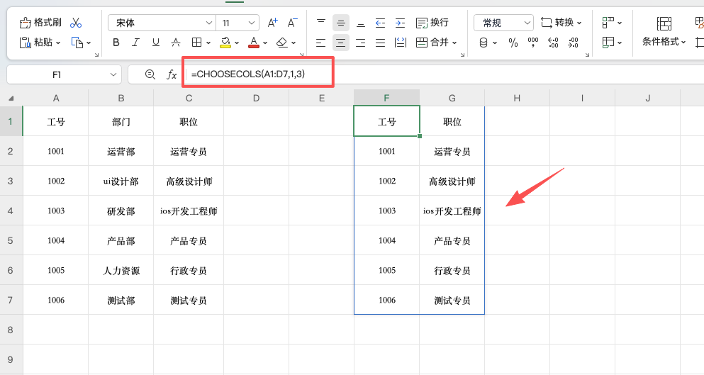 CHOOSECOLS 是一个功能强大的 Excel函数,可以从数据区域中按列号提取指定列。