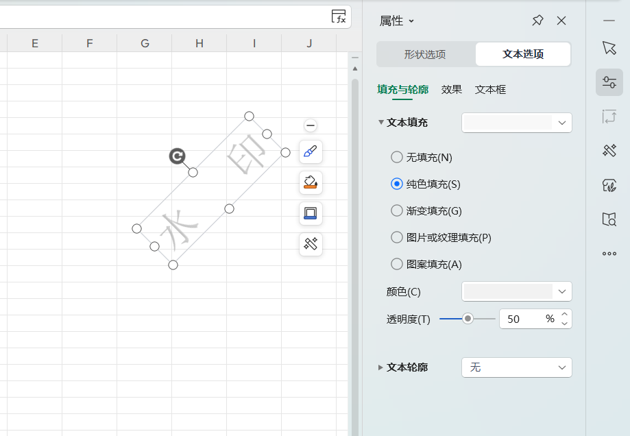 - 切换【文本选项】,将文本设为浅色、透明度50%,减少遮挡,再放至表格区域即可。