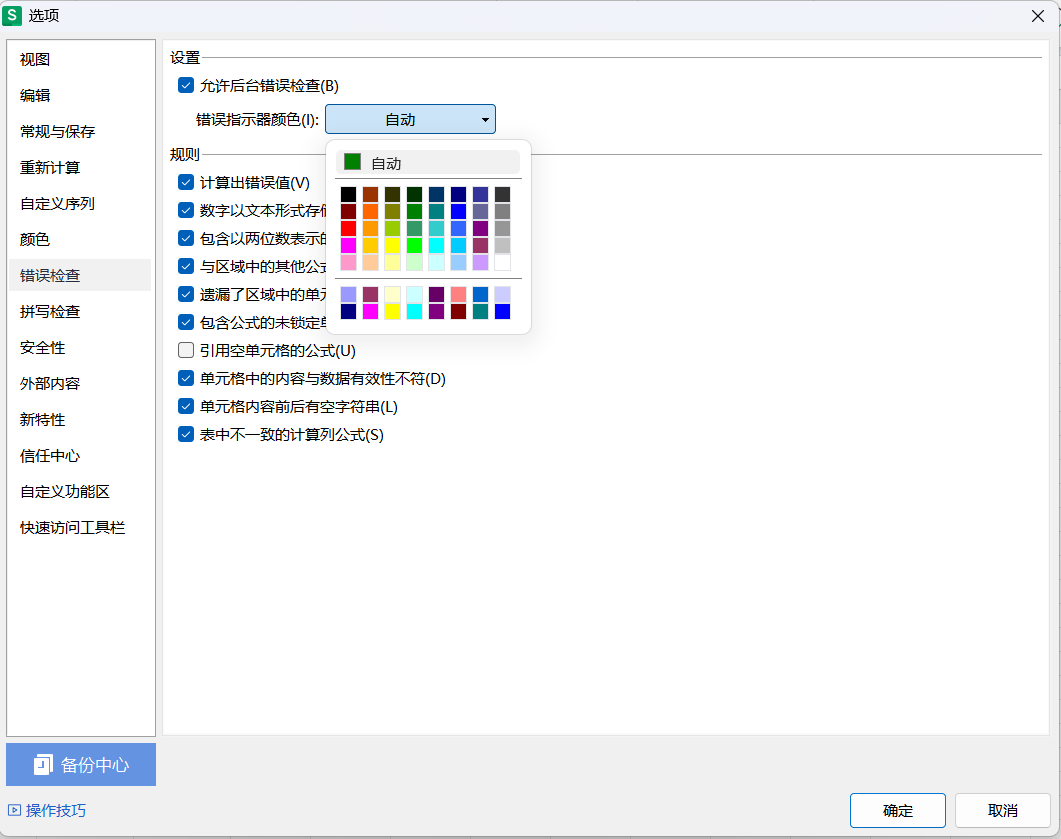 - 弹出设置窗口后,找到“错误检查”选项卡,将“允许后台错误检查”前方的勾选框取消;