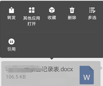 那么有什么办法可以解决这个问题呢?其实要想实现QQ和微信之间分享文件,只需安装一个第三方APP作为中转就可以了,比如大家手机上基本都装的WPS。长按需要分享的文件,在弹出的菜单中选择“其他应用打开”,然后选择WPS支持当前格式的APP打开选择的文件,然后再点击WPS内分享按钮就可以转发到QQ的选项了,如图3所示。
