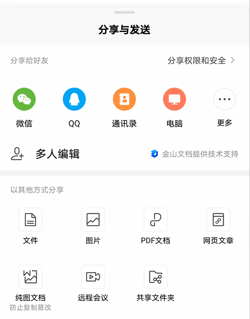最后在WPS中选择最下面的“分享按钮”,就可以把文件分享给QQ或微信好友了,如图4所示。
