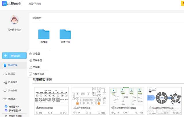 2.在新建文件页面中选择流程图进行新建使用,或者在最下方选择从模板页面中进行编辑使用。需要转入模板页面中进行编辑。两种方法都是可以实现最终目的的,这里将以前者为大家进行展示。