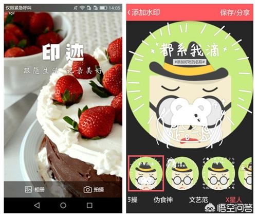 一款水印相机,添加图片后直接点击水印,就可以留下自己的时光印迹。共有4种水印模板,包括萌宠、文艺、美食和无节操四个种类,总有一款适合你。