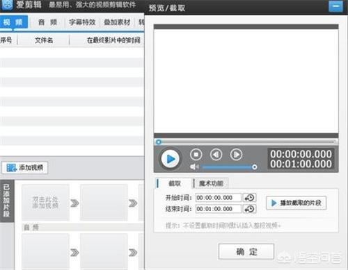 如果只是进行视频拼接或图片视频,就可以通过爱剪辑来完成,可以添加基础特效、背景音乐。适合中低级水平使用。