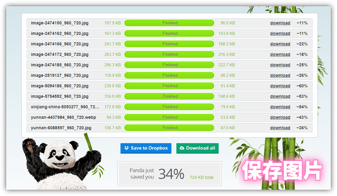 打开后上传图片即可自动压缩,支持WebP、PNG、JPEG格式,压缩完成后,点击下载按钮,就能保存图片了,图片会变成PNG格式。
