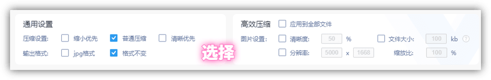 我们添加好图片后,可以设置压缩模式,有缩小优先、普通压缩、清晰优先和高效压缩这4种类型。