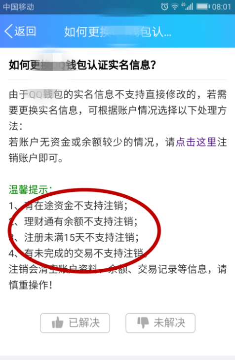 7、如果你满足注销条件,就点按“点击这里”进行注销,