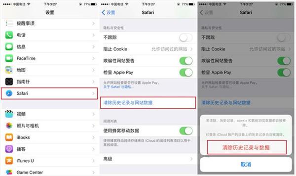 我们用浏览器浏览网页的时候,也会产生很多的缓存垃圾,占用手机内存,所以我们要经常清理浏览器的缓存数据,点击【设置】——【Safari浏览器】——【清除历史记录与网站上数据】就可以啦~
