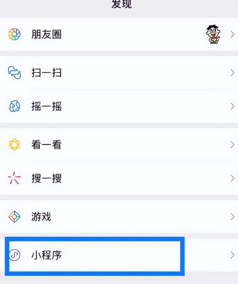 3.然后我们就会进入到发现界面,我们点击界面下方的小程序选项。
