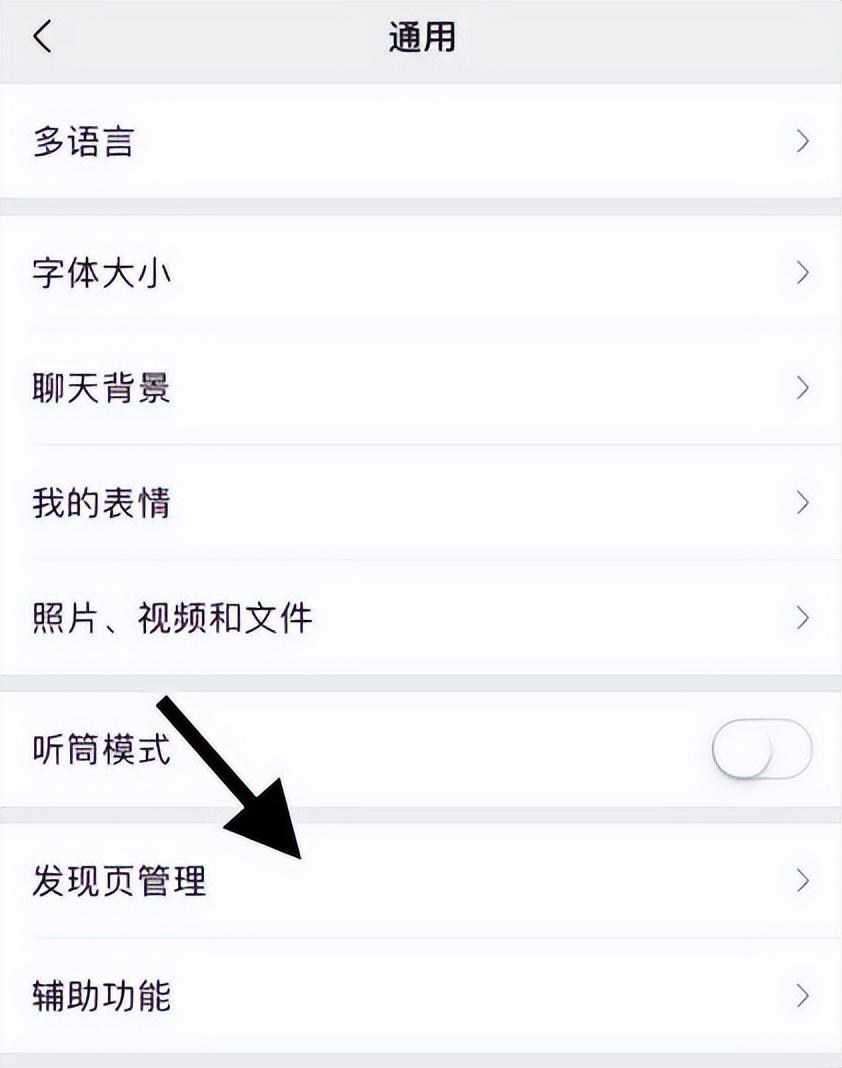 5. 在通用界面中,我们点击下方的发现页管理这个选项。